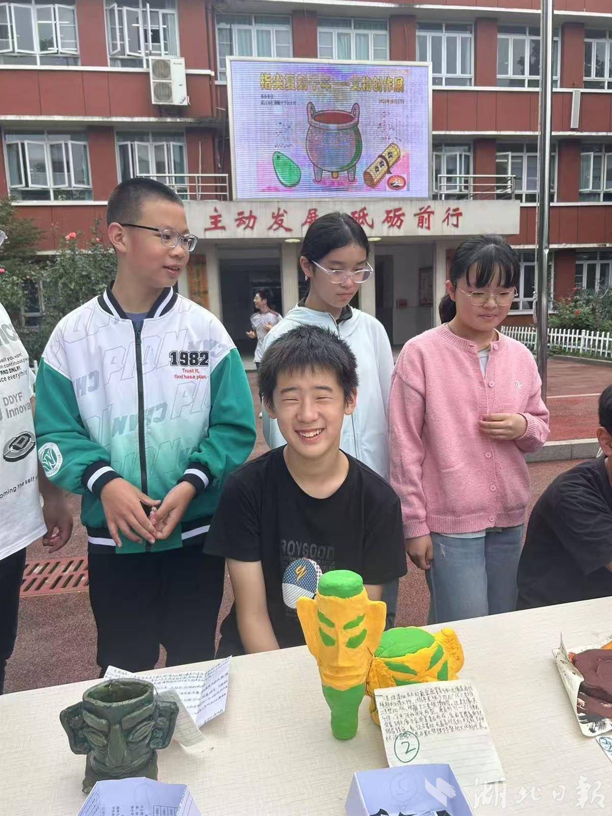 这些由日常材料创作的作品,不仅形似更求神似,在复刻文物形制的同时,更注入少年对历史文化的理解。其中,三星堆面具作品双眼突出、嘴角微扬,既有文物的神秘感,又带着学生手工的鲜活感恒利决策,吸引不少师生驻足聆听讲解。