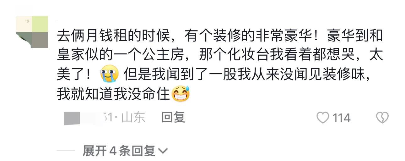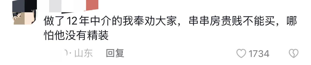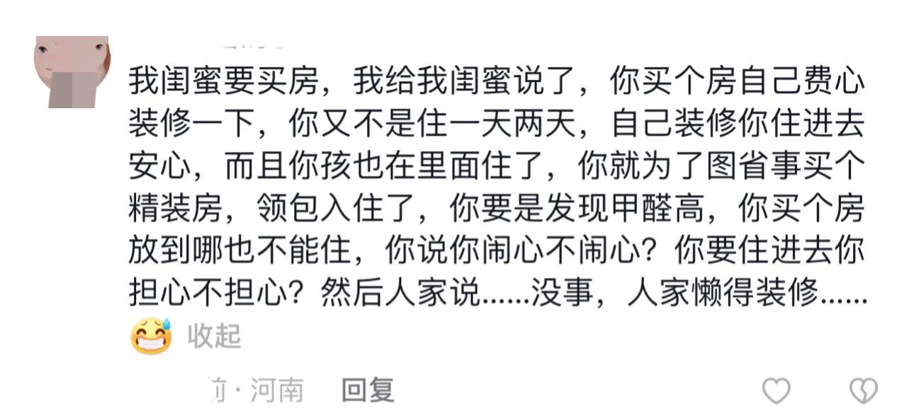 当年也差点买这种房子,还以为捡便宜了,不用装修,还找人介绍的中介,跟我说拎包入住,看的时候是夏天,看完房子,又跟我媳妇回到楼下,本来想跟楼下几个阿姨们打听一下,这个小区冬天供暖如何,结果阿姨们问我们是要买那户,我们就说了,结果阿姨们集体说,让我们在看看其他房子吧,说我们是年轻人刚结婚不适合这个房子,大概意思是前一年冬天这个房子出事了,具体的阿姨们不肯说,我俩一顿感谢阿姨们,掉头就回家了,从那以后就不看这种装修好的房子了