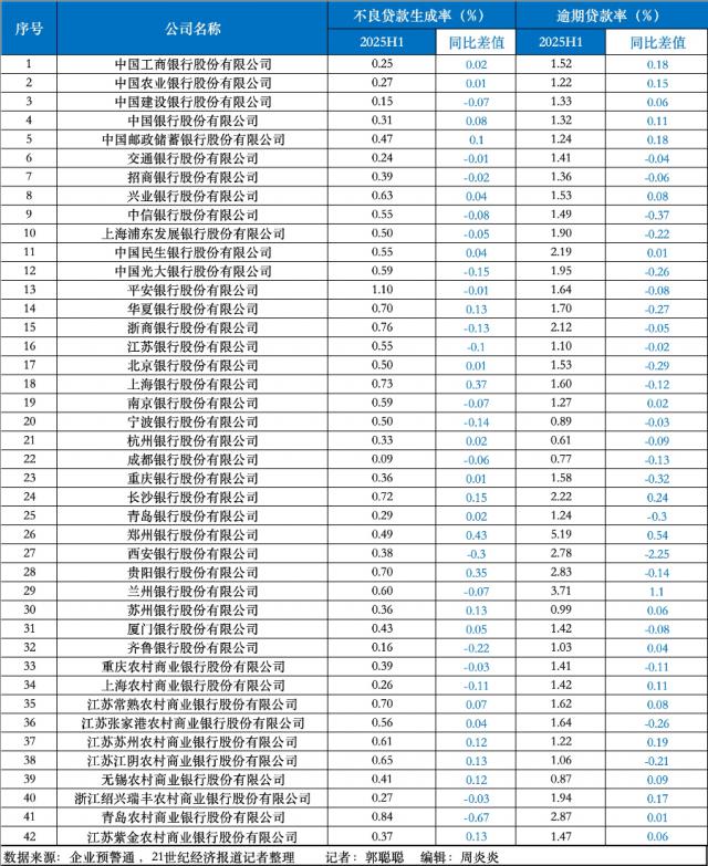 42 家上市银行整体贷款逾期率为 1.67%,较 2024 年底上升 3.5 个基点,较 2023 年底上升 11 个基点。一般认为,逾期贷款规模的扩大,容易导致更高的不良贷款生成。